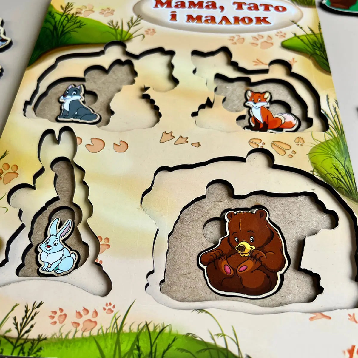 Mängija asetab sama liigi loomakujud alusele vastavatesse pesadesse: esmalt beebi, siis ema ja lõpuks isa. See pole lihtsalt sorteerimismäng, vaid ka harjutus järjekorra, võrdlemise ja loogilise mõtlemise õppimiseks läbi mängu. Teema on lastele arusaadav ja põnev – loomad ja pere.