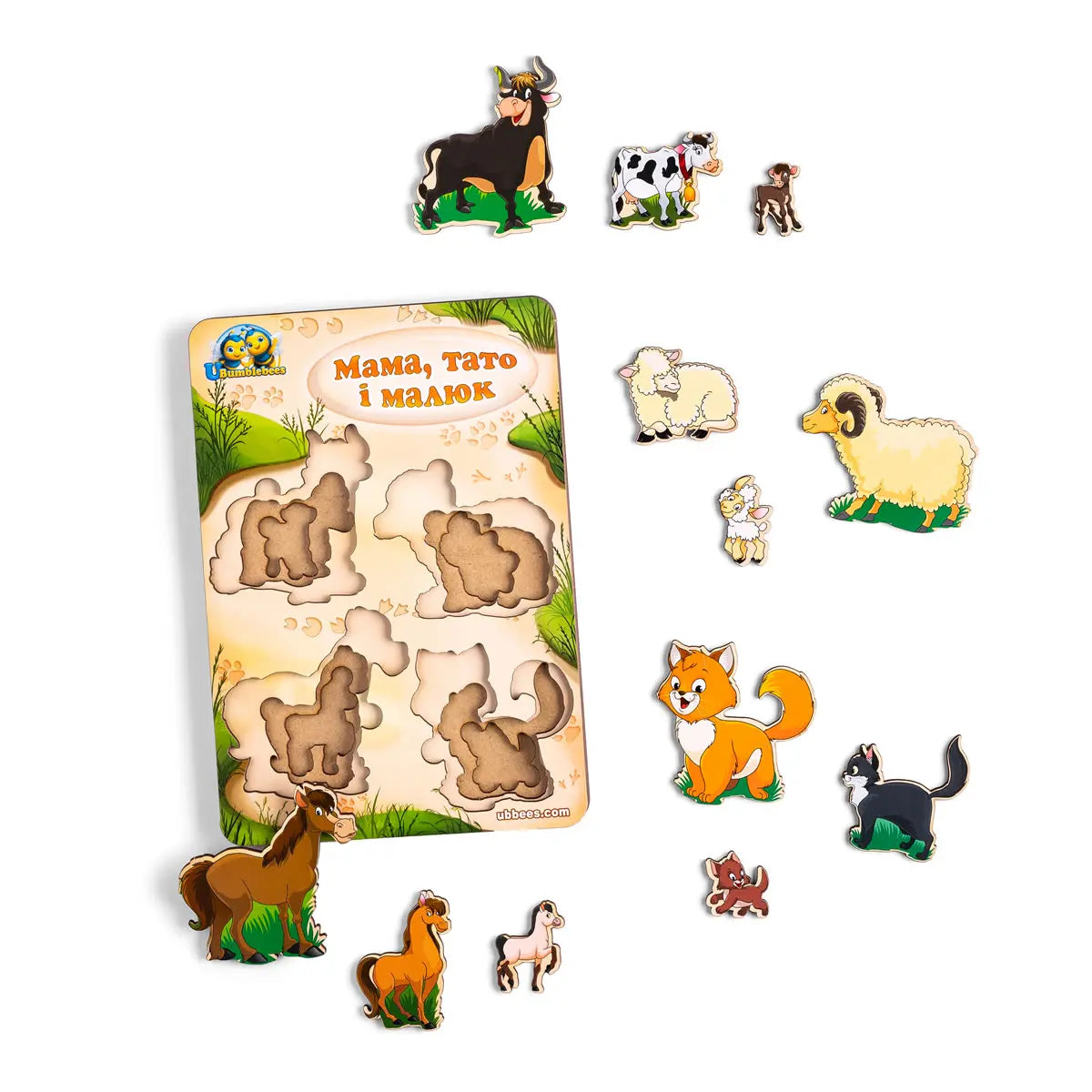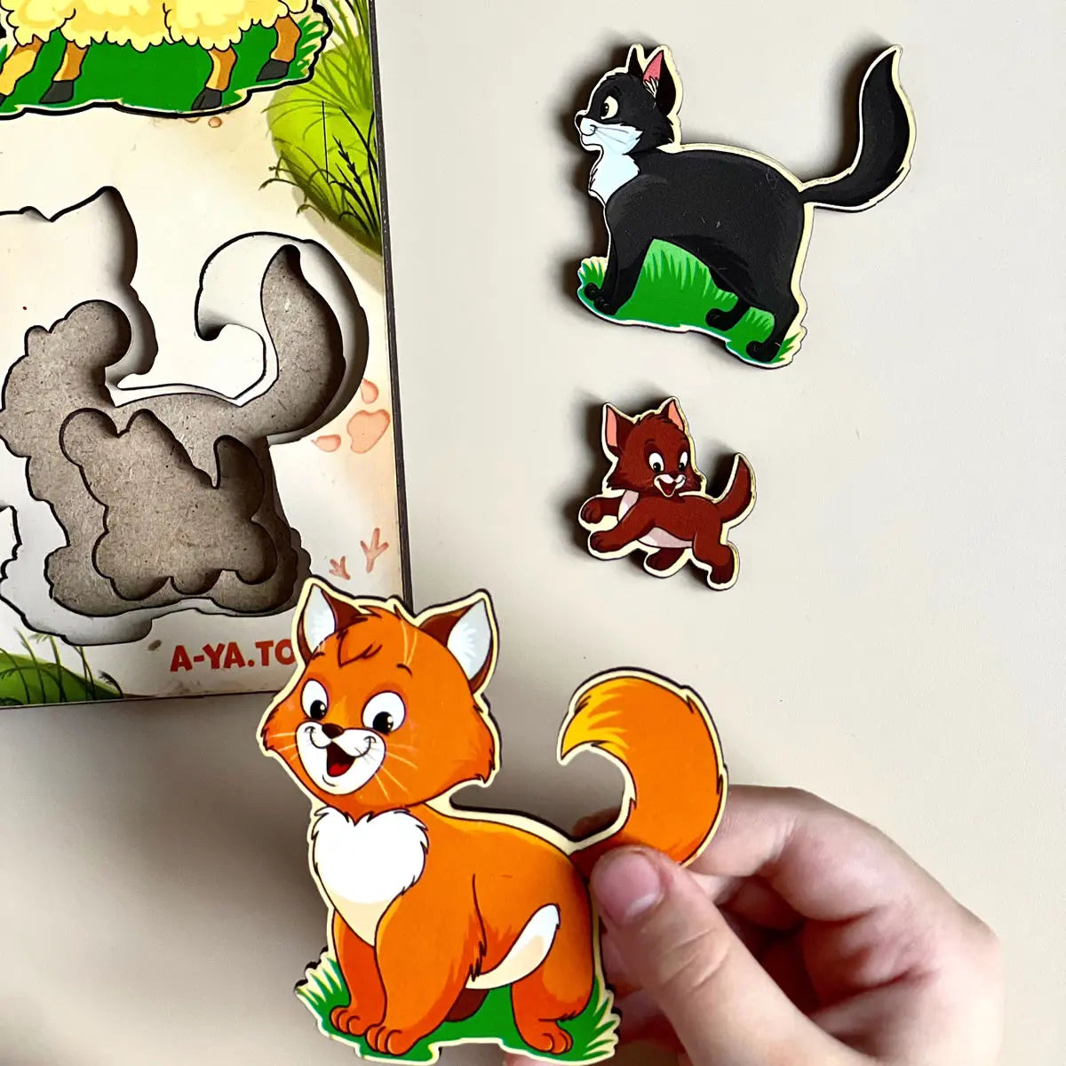 Puidust pusle "Suurem või väiksem: Loomapere - koduloomad 2“
