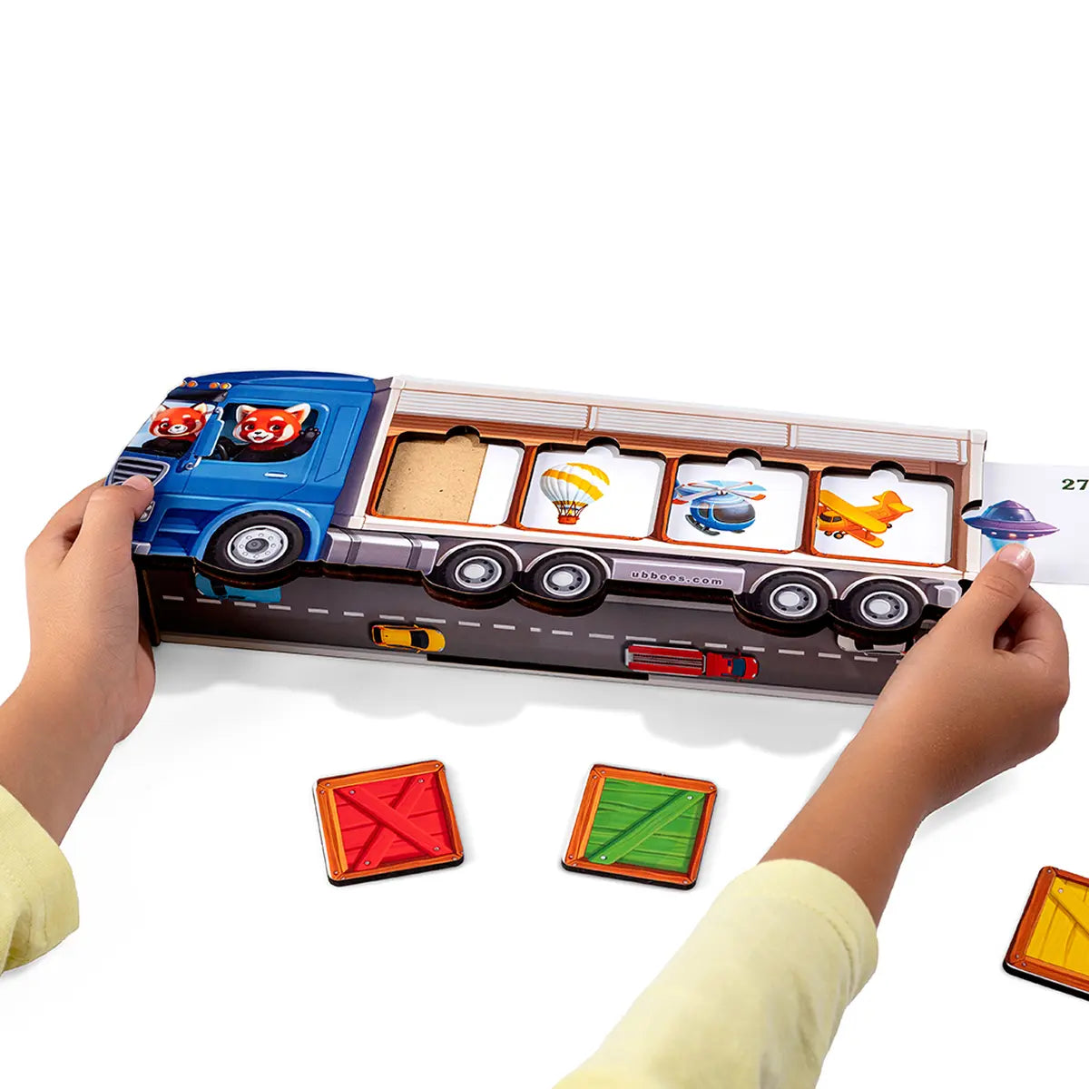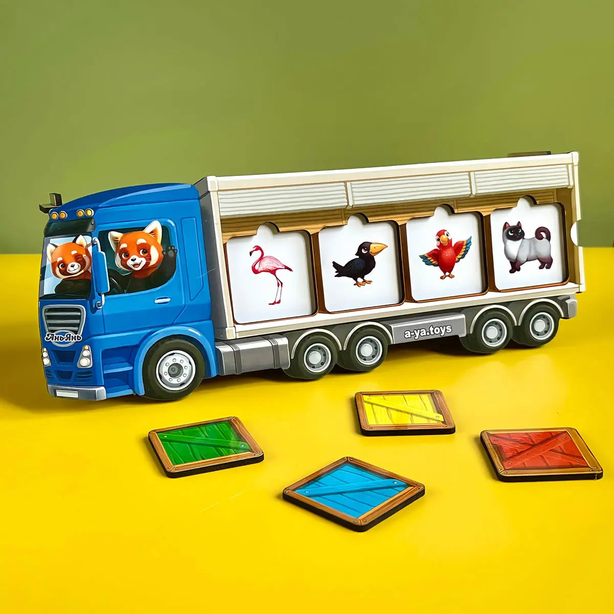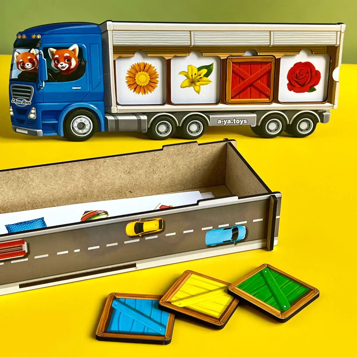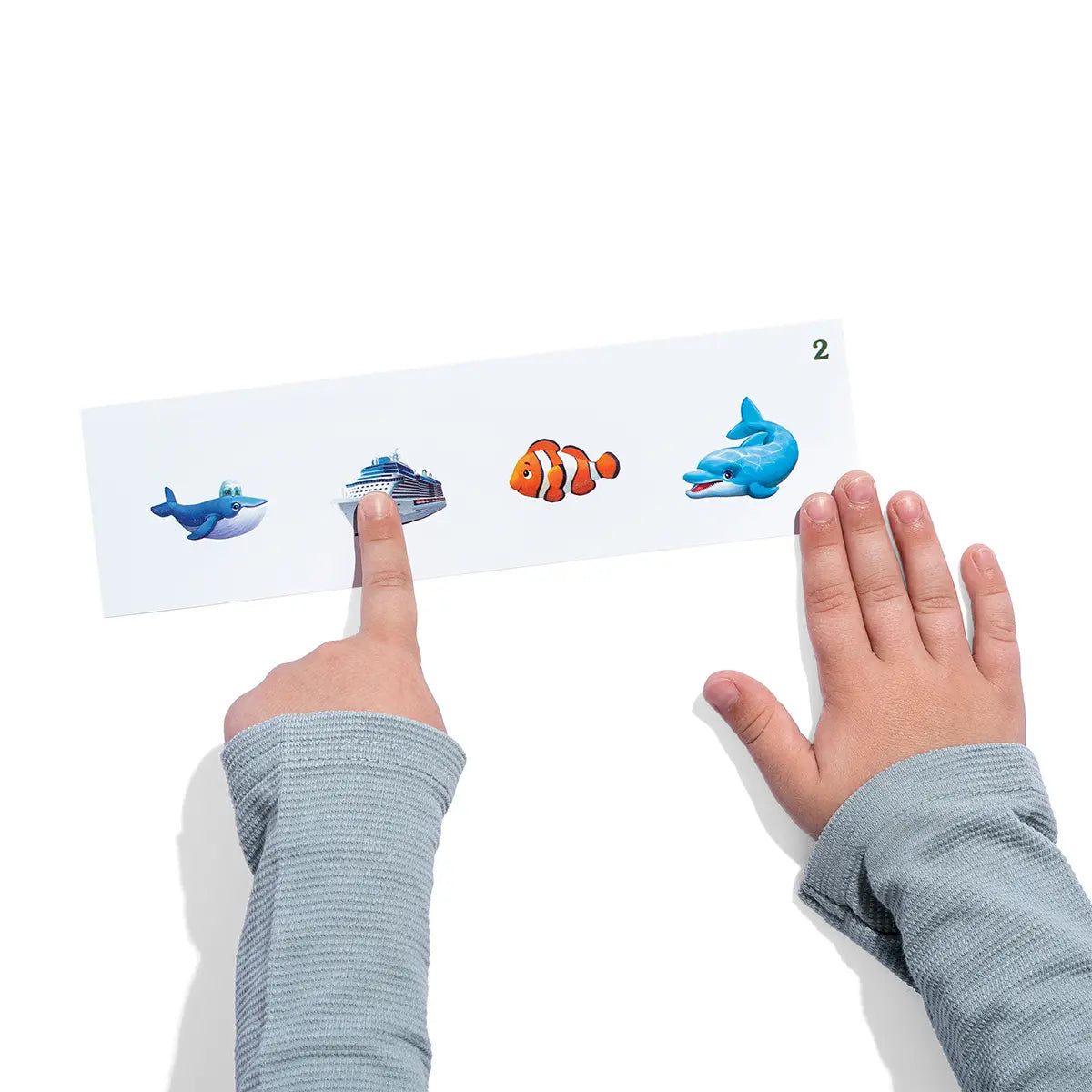 Kes on siin liigne – ja miks? Interaktiivne mäng veoauto ja kaartidega, mis muudab loogikaülesanded põnevaks uurimisretkeks. Laps võrdleb, rühmitab, leiab ühist ja määrab, mis ei sobi – treenides samal ajal mõtlemist, kõnet ja tähelepanu. Ideaalne eelkooliealistele ja algklasside lastele.