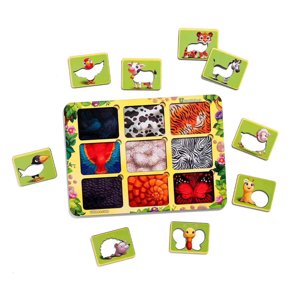 Mida mäng arendab: tähelepanu ja visuaalset tajumist, loogilist mõtlemist ja võrdlemisoskust, klassifitseerimist tunnuste järgi, kõne arengut: kirjeldavad laused, sõnavara (keha, karvkate, tekstuur), peenmotoorikat ja sensoorset taju.