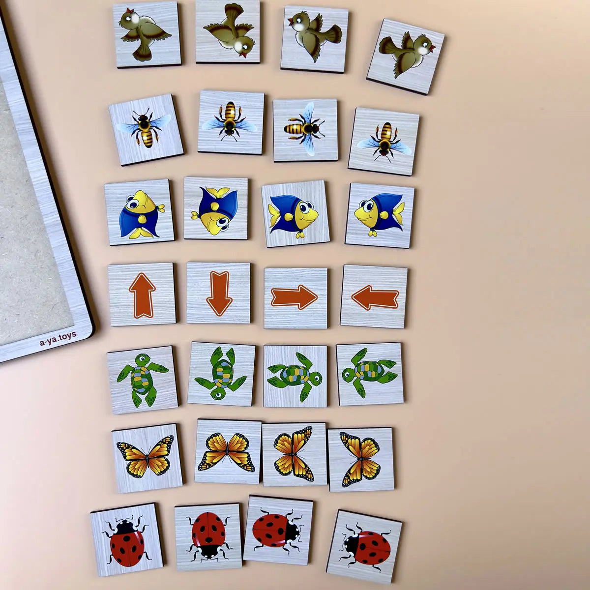 24 eemaldatavat kaarti piltidega: mesilased, kalad, liblikad, kilpkonnad, seened, lepatriinud.